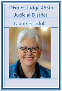 Note to the Voter: Remember that you are the HR person choosing who is best qualified to be in Leadership for the State of Texas. Check out the Candidate's educational background, their work history, and Community Service. If it is an Incumbent (in office now and trying to get reelected) check their voting record. Very important. Did they vote the way they promised they would on their platform? Did they vote with their party or against it? What bills have they authored or coauthored and how many got passed into law? That is why they are there. They are to vote to represent you to create new laws to make life better. Which candidate is best qualified over all and lines up with your beliefs? That is who you should vote for.
